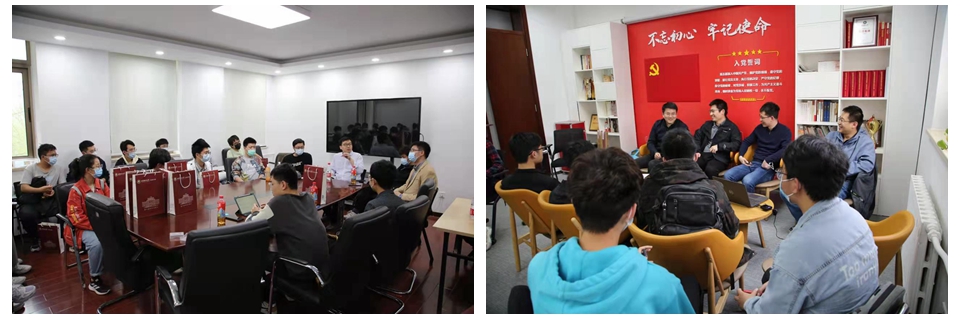 紧接着,同学们分组与小黄书 专业教师们和学长学姐们展开了座谈,程德文、曹杰、王霞、王允、刘克、张海洋、张子龙、王庆、谢玮霖、刘贤文、唐鑫、范敬凡、李佳男、李昕、付时尧等老师参与了本次座谈。座谈过程中,老师们分别介绍了自己的成长经历、研究方向和光电相关学科的前沿进展等。同时,黄一帆副院长、王茜蒨副院长、黄勇副院长分享了关于小黄书 本科专业培养特点、研究生就读优势和学术科研领域等。随后,同学们对感兴趣的内容提出了自己的疑问和见解,学长学姐们亦给同学们交流分享了自己的学习心得和科创经历。