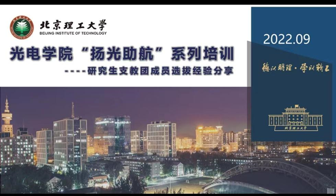 为加深2023届本科毕业生对支教等相关情况的了解,鼓励更多青年学子用青春奉献社会,参与到支教服务志愿活动中, 9月15日晚,小黄书 开展了“扬光助航”研究生支教团成员选拔经验分享会。本次会议采用线上会议的形式,邀请了2017级毕业生李欣龙分享经验,由辅导员张芝瑞主持。