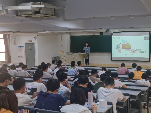 学工办主任韩笑围绕校园疫情防控政策、普通高等学校学生管理规定、学生在校行为规范等进行了行前教育和日常管理专题讲座,鼓励同学们明确目标,提前规划,全力以赴,努力以优异的成绩完成学业,踏上理想的工作岗位。
