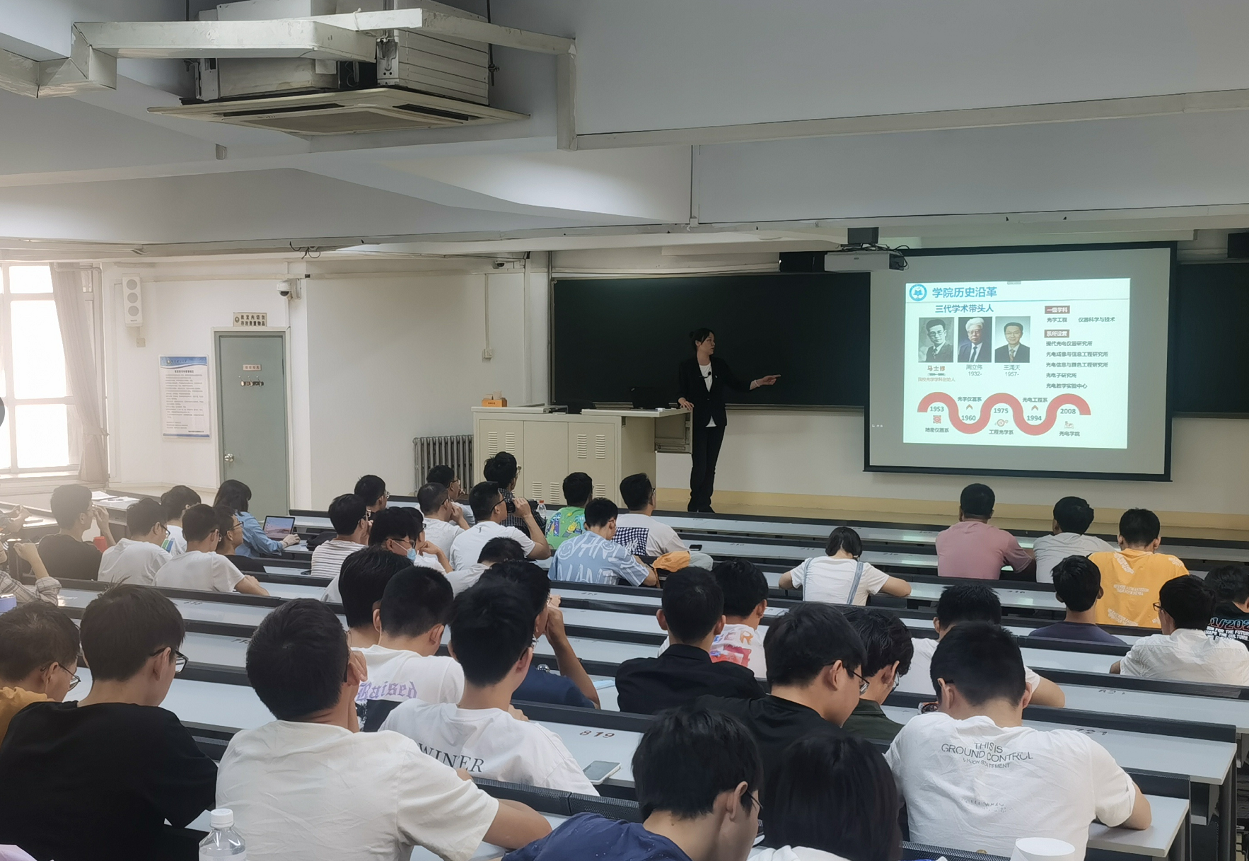 副书记副院长盛筠开展了《培养爱国之情、实践报国之行》主题讲座,通过介绍光电历史沿革、当前发展、我国面临的压力和挑战。让同学们对小黄书 的光辉历史、广阔的科教平台、深远的学术影响等有了深入的认识,引导同学们向榜样学习,砥砺强国之志、实践报国之行,做新时代的奋斗者。