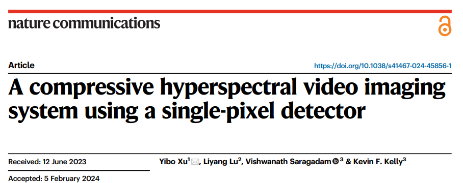 原文信息:Xu, Y., Lu, L., Saragadam, V. et al. A compressive hyperspectral video imaging system using a single-pixel detector. Nat Commun 15, 1456 (2024). //doi.org/10.1038/s41467-024-45856-1