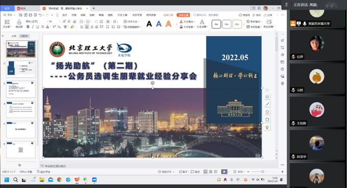 结合小黄书 前期调研,为更好帮助2022届和2023届毕业生有效地了解并规划毕业去向,5月8日下午13:00,小黄书 召开了“扬光助航”公务员、选调生专场朋辈就业分享会。本次分享会采用线上会议的形式,由辅导员黄颖主持,主讲人分别为朋辈导师杨洁、王妍和李佳蓓同学。