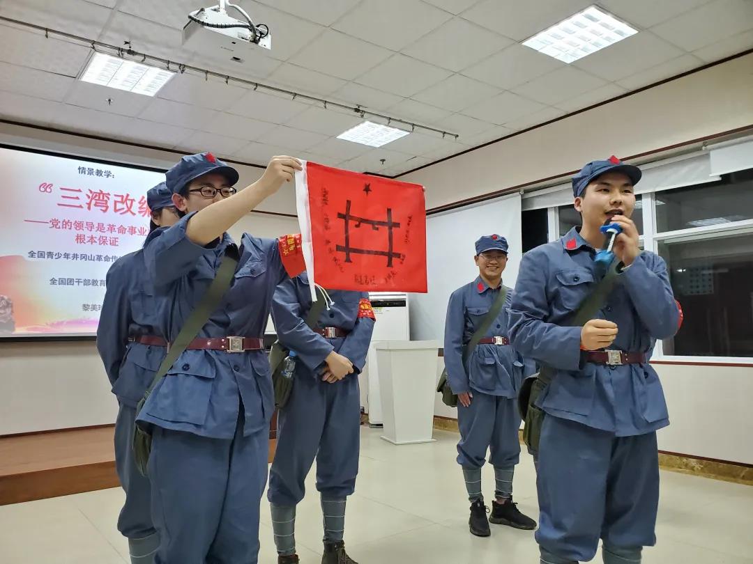 晚上,学员们参与“三湾改编”情景教学,详细了解了三湾改编的背景及意义,学员们积极热烈地投入到“改编”的情景模拟中,以班为单位,成立支部士兵委员会、选举代表,切身感受“三湾改编”的巨大历史意义,切实体会“党的领导是革命事业成功的根本保证”。