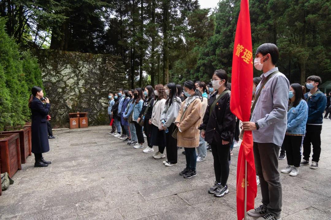 2年零4个月的时间,48000多名英烈英勇献身。花红映山,杜鹃啼血。在烈士陵园,学员们缓步走上108级台阶,向革命烈士敬献花圈、默哀致敬。一张张图片,一个个名字,一组组数据,直击心灵,触动心弦。之后学员们在革命烈士陵园,重温入党誓词。一声声誓词表达着学员们这一代青年人的初心与承诺。