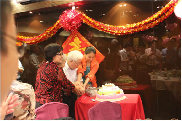 国交宾馆二层餐厅举行了80华诞的庆贺晚宴,光工一所全体同事和院士弟子济济一堂,共同举杯祝福周立伟院士及夫人健康长寿。